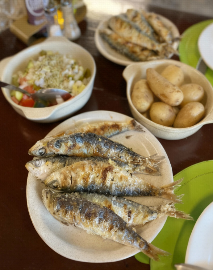 🐟 Sabor a tradição portuguesa! 🔥✨ Sardinhas grelhadas, batatinhas e salada fresca — uma combinação simples, mas impossível de resistir 😋🇵🇹